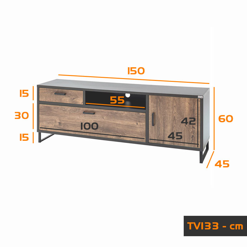 میز تلویزیون هیراد مدل TV133 با طراحی مدرن، ساده و منحصربفرد، با ابعاد مناسب برای نشیمن تی وی روم (TV Room) و استفاده از فرم مستطیلی در طراحی که باعث نظم بخشیدن به محیط می شود و همواره ترند و مد در دکوراسیون خواهد بود. این محصول با وجود کشو و کمد و قفسه های متعدد، نیاز شما برای لوازم جانبی تلویزیون را پوشش می دهد. پایه های این محصول فلزی بوده که با رنگ مشکی مات پوشیده شده و از مقاومت مناسبی برخوردار است. استاندارد ابعادی این محصول اروپایی می باشد.شما می توانید میز تلویزیون هیراد مدل TV133 را با ترکیب رنگی دلخواه سفارش دهید و با لذت تلویزیون تماشا کنید.جنس این محصول ملامینه می باشد .