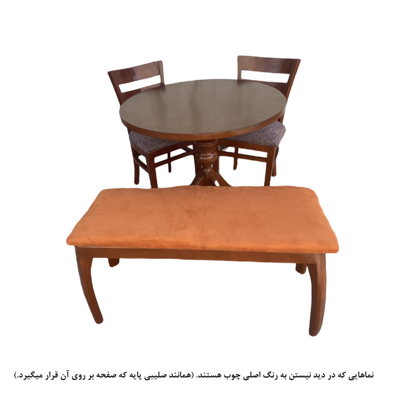 توضیحات صندلی | نیمکت مناسب دو نفره، رنگ بخش چوبی فندقی و ثابت میباشد. | تنوع رنگ انتخابی شما مربوط به رنگ پارچه صندلی ها می باشد. | جنس پارچه استفاده شده مسکو خارجی می باشد | ارتفاع صندلی از زمین تا نشیمن حدود 45 سانتی متر است ارتفاع کل صندلی(از زمین تا بالاترین قسمت پشتی) حدود 90 سانتی متر نشیمن فوق العاده راحت جنس زیر کار صندلی اسفنج (ابر) |