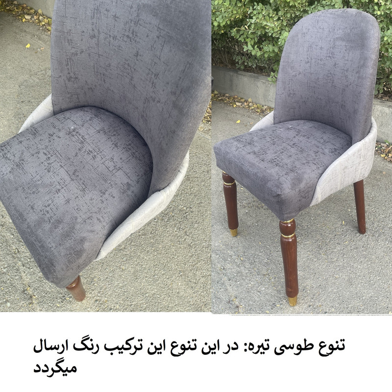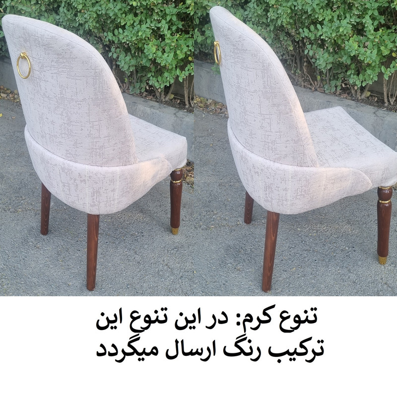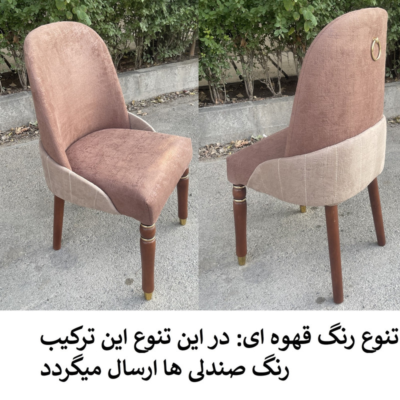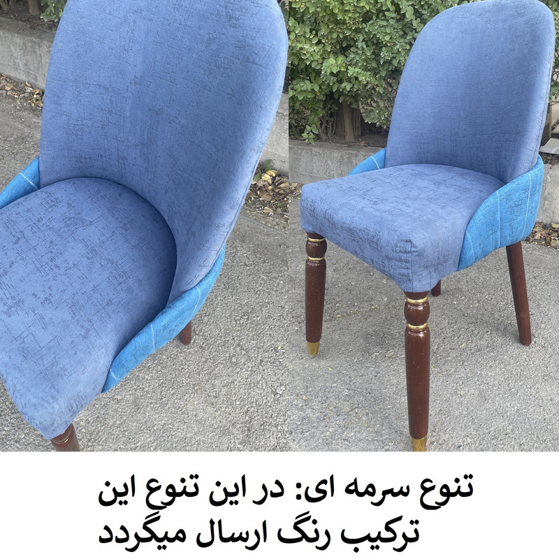 | توضیحات صندلی | رنگ بخش چوبی قهوه ای و ثابت میباشد. | تنوع رنگ انتخابی شما مربوط به رنگ پارچه صندلی ها می باشد. | جنس پارچه استفاده شده خارجی می باشد | ارتفاع صندلی از زمین تا نشیمن حدود 45 سانتی متر است ارتفاع کل صندلی(از زمین تا بالاترین قسمت پشتی) حدود 95 سانتی متر .| نشیمن فوق العاده راحت جنس زیر کار صندلی اسفنج (ابر).| ابعاد حدودی است |