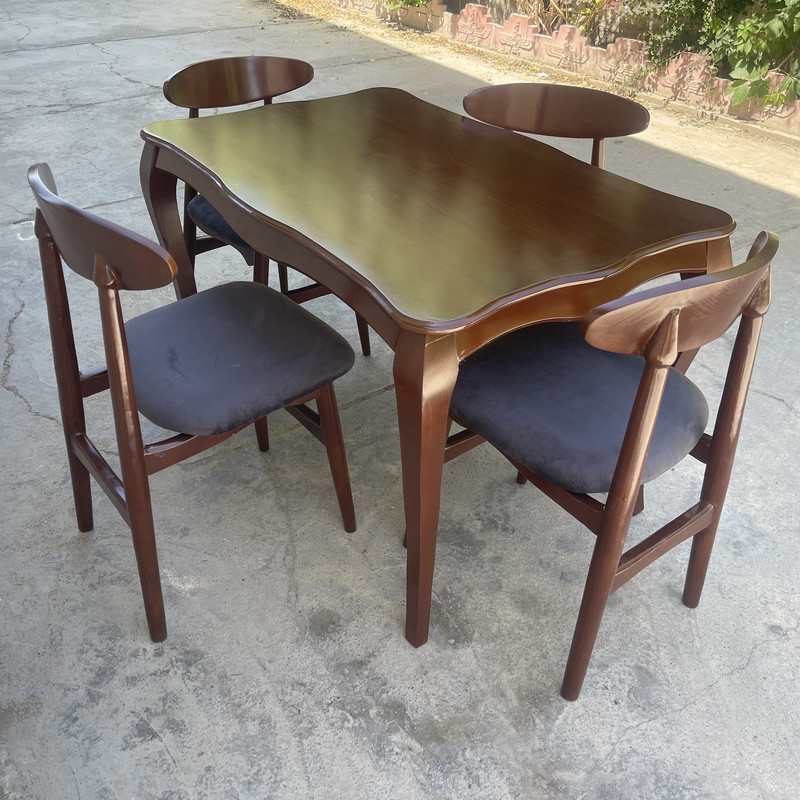 | سایر توضیحات | رنگ بخش چوبی این کار قهوه ای بوده و ثابت است، تنوع رنگ انتخابی شما مربوط به رنگ پارچه صندلی ها می باشد.| ممکن است به دلیل نور عکاسی رنگها تفاوت جزئی داشته باشد.| به مشخصات دقیق محصول دقت کنید | ممکن است در هر سری تولید، رنگ چوب بدلیل ساخت دستی رنگ تفاوت جزئی داشته باشد.| درجه بندی کیفیت : نجاری و رنگ آمیزی عالی و بسیار مقرون به صرفه.| نماهایی که در دید نیستند، به رنگ اصلی چوب است.همانند کف (ته) پایه های میز که به خود میز وصل میگردد |