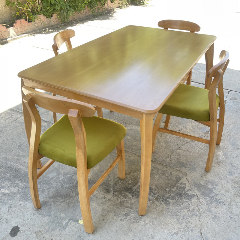 | سایر توضیحات | رنگ بخش چوبی این کار خود رنگ بوده(طبق تصویر) و ثابت است، تنوع رنگ انتخابی شما مربوط به رنگ پارچه صندلی ها می باشد.| ممکن است به دلیل نور عکاسی رنگها تفاوت جزئی داشته باشد.| به مشخصات دقیق محصول دقت کنید | ممکن است در هر سری تولید، رنگ چوب بدلیل ساخت دستی رنگ تفاوت جزئی داشته باشد.| درجه بندی کیفیت : نجاری و رنگ آمیزی عالی و بسیار مقرون به صرفه.| در رنگ ودرنگ رگه ها و گره های چوب نمایان و مشخص است.| همچنین چون پایه های میز و صندلی چوب هستن و صفحه ام دی اف, ممکن است صفحه نسبت به پایه ها تفاوت رنگ جزئی داشته باشد.| نماهایی که در دید نیستند، به رنگ اصلی چوب است. |