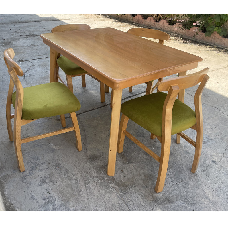 | سایر توضیحات | رنگ بخش چوبی این کار خود رنگ بوده(طبق تصویر) و ثابت است، تنوع رنگ انتخابی شما مربوط به رنگ پارچه صندلی ها می باشد.| ممکن است به دلیل نور عکاسی رنگها تفاوت جزئی داشته باشد.| به مشخصات دقیق محصول دقت کنید | ممکن است در هر سری تولید، رنگ چوب بدلیل ساخت دستی رنگ تفاوت جزئی داشته باشد.| درجه بندی کیفیت : نجاری و رنگ آمیزی عالی و بسیار مقرون به صرفه.| در رنگ ودرنگ رگه ها و گره های چوب نمایان و مشخص است.| همچنین چون پایه های میز و صندلی چوب هستن و صفحه ام دی اف, ممکن است صفحه نسبت به پایه ها تفاوت رنگ جزئی داشته باشد.| نماهایی که در دید نیستند، به رنگ اصلی چوب است. |