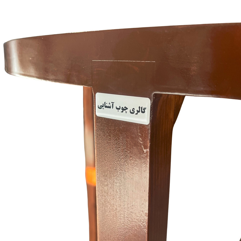 توضیحات میز قطر میز 90 سانتیمتر ضخامت چوب در پایه های میز حدودا 5x3 سانتیمتر(در تصویر مشخص است) دارای صفحه موجدار شکیل و زیبا(طرح اصلی چوب) صفحه میز روکش چوب راش اتصالات محکم