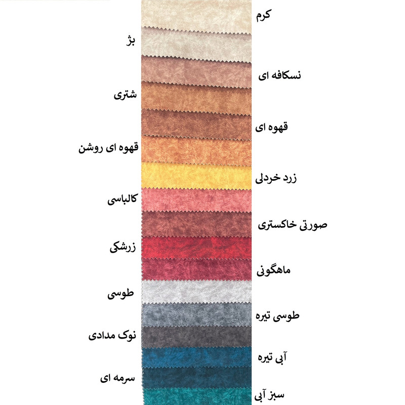 سایر توضیحاترنگ بخش چوبی این کار قهوه ای روشن بوده، تنوع رنگ انتخابی شما مربوط به رنگ پارچه صندلی ها می باشد. درجه بندی کیفیت : نجاری عالی و رنگ آمیزی خوب و مقرون به صرفه فروشنده اصلی این محصول برند گالری چوب آشنایی بوده و در هنگام خرید به این موضوع توجه فرمایید. نماهایی که در دید نیستند، به رنگ اصلی چوب است. دارای موجهای شکیل و زیبا(طرح اصلی چوب) به مشخصات دقیق محصول از جمله ضخامت چوب دقت کرده و توجه کنید محصول با مشخصات ذکر شده را فقط گالری چوب آشنایی ارائه مینماید. چوب روسی(نراد)