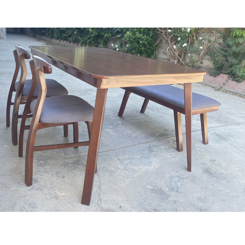 سایر توضیحات | رنگ چوب ثابت و قهوه ای است(همانند تصویر) و تنوع رنگ انتخابی شما مربوط به رنگ پارچه صندلی ها می باشد. | نماهایی که در دید نیستند، به رنگ اصلی چوب است. همانند کف (ته) پایه های میز که به خود میز وصل میگردد |