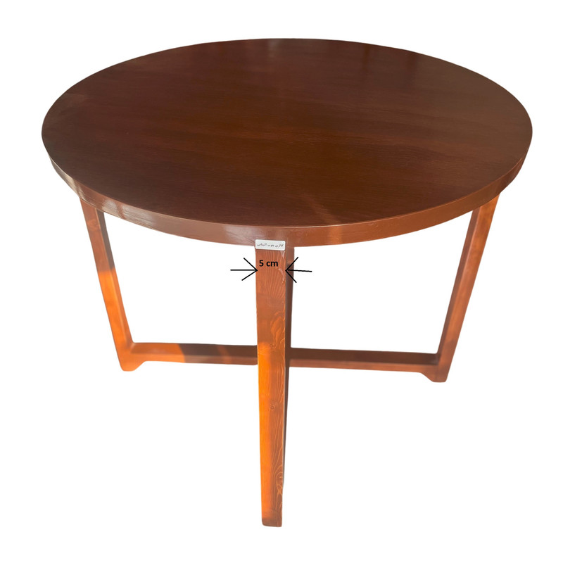 توضیحات میزقطر میز 100 سانتیمتر ضخامت چوب در پایه های میز حدودا 5x3 سانتیمتر(در تصویر مشخص است) دارای صفحه موجدار شکیل و زیبا(طرح اصلی چوب) صفحه میز روکش چوب راش اتصالات محکم