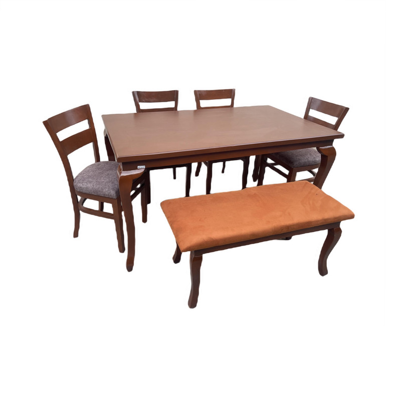 میز و صندلی های غذاخوری یکی از اساسی ترین نیازهای هر خانه می باشد که باید در خرید آن دقت و توجه کافی داشت که در عین اینکه جنس و کیفیت مناسبی دارد، همچنین طراحی جذابی نیز داشته باشد، میز و صندلی نهارخوری ارائه شده توسط گالری چوب آشنایی، با طراحی جدید و دارای زیبایی خاص یکی از جذابترین و شیکترین ستهای نهارخوری موجود در بازار است که برای فضای خانه بسیار مناسب می باشد و می توان زیبایی خاصی را با آن به خانه بخشید. این میز و صندلی مناسب 6 نفر بوده و رنگ بخشهای چوبی آن قهوه ای بوده (همانند عکس) و رنگ پارچه بر اساس تنوع قابل انتخاب است.