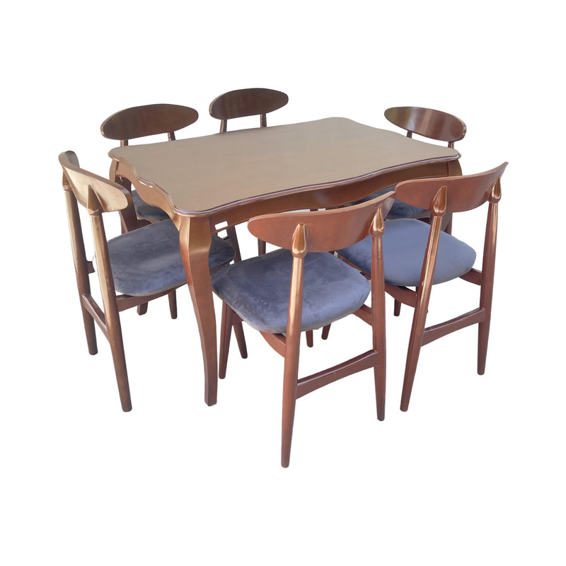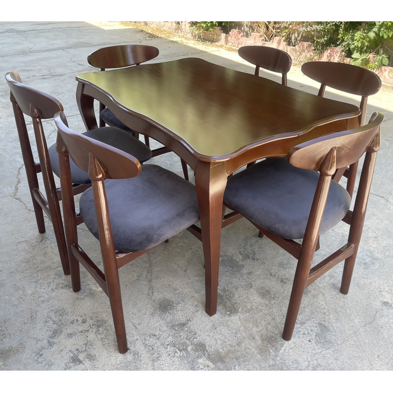 میز و صندلی های غذاخوری یکی از اساسی ترین نیازهای هر خانه می باشد که باید در خرید آن دقت و توجه کافی داشت که در عین اینکه جنس و کیفیت مناسبی دارد، همچنین طراحی جذابی نیز داشته باشد، میز و صندلی نهارخوری ارائه شده توسط گالری چوب آشنایی، با طراحی جدید و دارای زیبایی خاص یکی از جذابترین و شیکترین ستهای نهارخوری موجود در بازار است که برای فضای خانه بسیار مناسب می باشد و می توان زیبایی خاصی را با آن به خانه بخشید. این میز و صندلی مناسب 6 نفر بوده و رنگ بخشهای چوبی آن ثابت و قهوه ای بوده و رنگ پارچه بر اساس تنوع قابل انتخاب است.