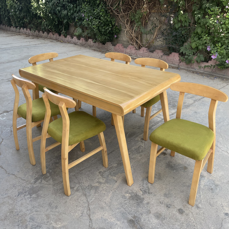 | سایر توضیحات | رنگ بخش چوبی خودرنگ بوده و ثابت میباشد. | تنوع رنگ انتخابی شما مربوط به رنگ پارچه صندلی ها می باشد. | درجه بندی کیفیت : رنگ آمیزی و نجاری عالی و مقرون به صرفه .| نماهایی که در دید نیستند، رنگ اصلی چوب است(همانند ته پایه های میز که از زیر به میز مونتاژ میشود) | ابعاد در حد 3الی4 سانتیمتر ممکن است خطا داشته باشد.| ممکن است موج صفحه متفاوت باشد.| امکان دارد برخی نقاط صفحه موجها برجسته باشد.| ممکن است در هر سری تولید، رنگ چوب بدلیل ساخت دستی رنگ تفاوت جزئی داشته باشد.| به مشخصات دقیق محصول دقت کنید. | ممکن است بدلیل عکاسی تفاوت جزئی در رنگها باشد.| |