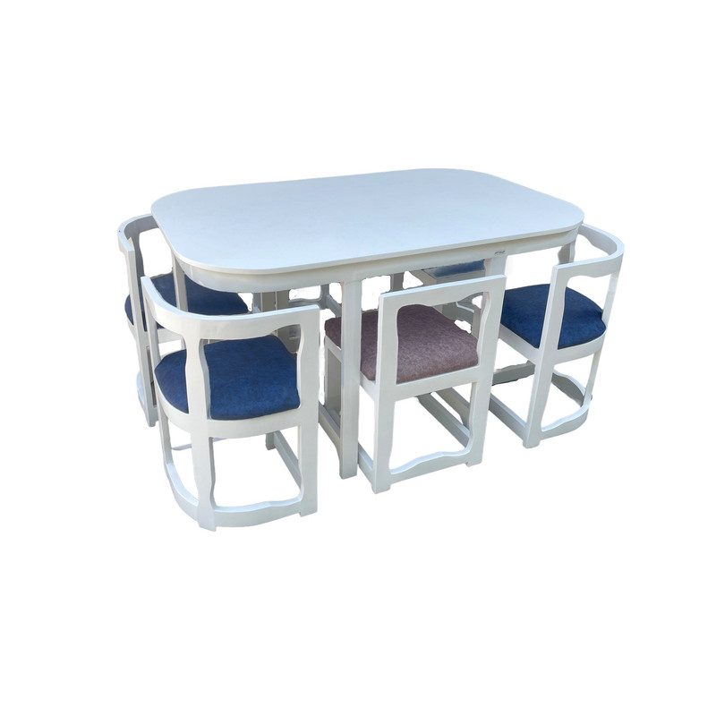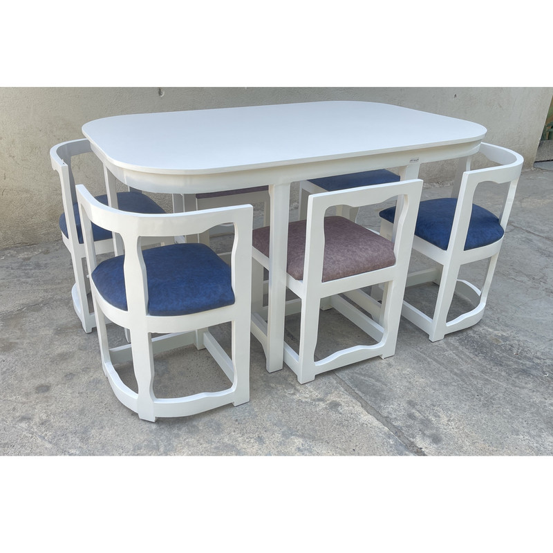 سایر توضیحاترنگ چوب سفید بوده و ثابت است.| تنوع رنگ انتخابی شما برای رنگ پارچه صندلی ها است.| درجه بندی کیفیت : نجاری و رنگ آمیزی عالی و بسیار مقرون به صرفه.| ممکن است به دلیل نور عکاسی رنگها تفاوت جزئی داشته باشد.| به مشخصات دقیق محصول دقت کنید.| نماهایی که در دید نیستند، به رنگ اصلی چوب است.| ابعاد حدودی است