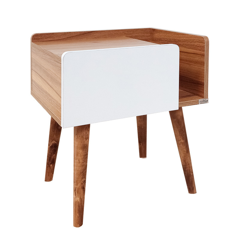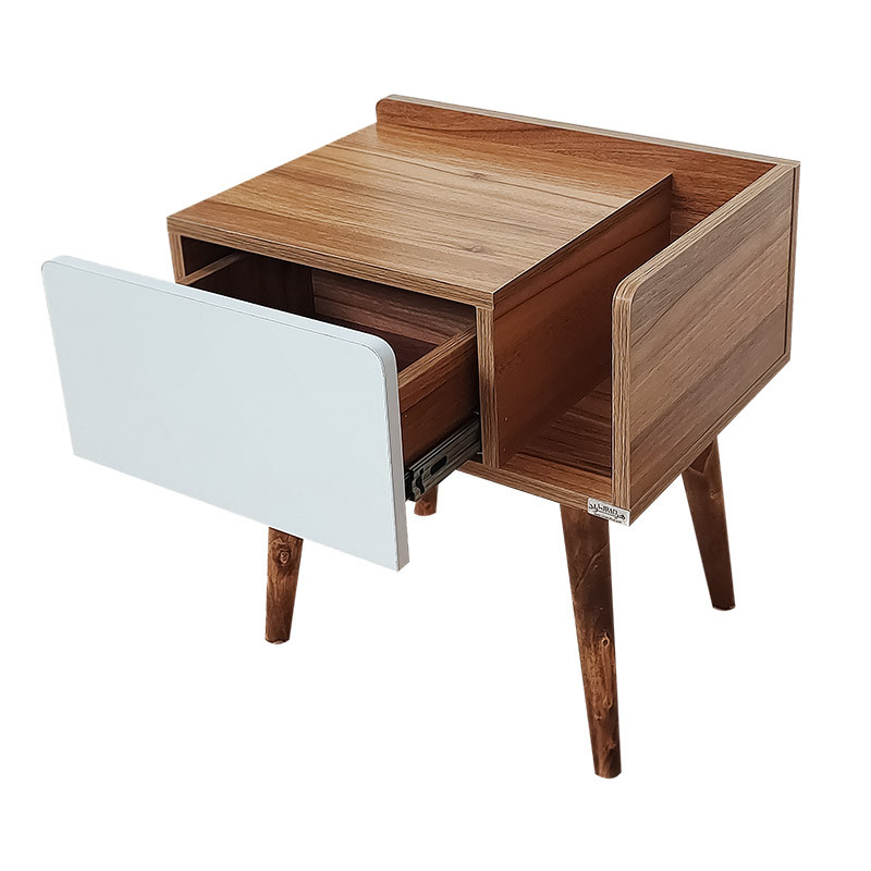 با انتخاب رنگ مناسب، میتوانید میز خود را سفارش دهید.طراحی میز پاتختی هیراد مدل PT101 به سبک Mid-century است. دارای استحکام و کیفیت بینظیری بوده و برای ساخت آن از استاندارد های اروپایی استفاده شده است.جنس این محصول ملامینه می باشد ابعاد محصول به این شرح می باشد طول 50 عرض 35 ارتفاع 60.