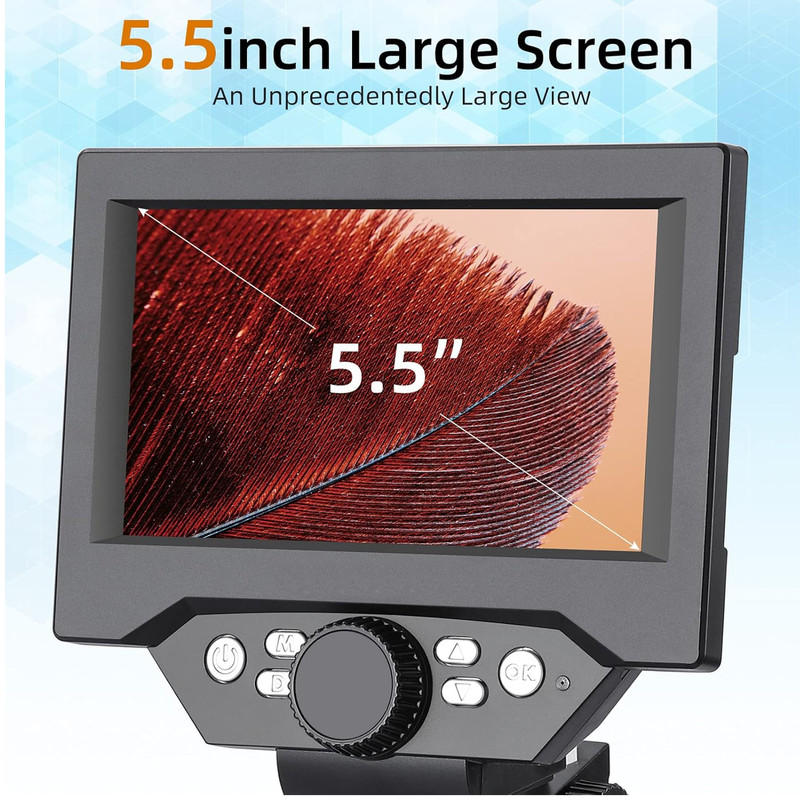 با بزرگنمایی 1000 برابر و صفحه نمایش 5.5 اینچی، ابزاری حرفه‌ای برای مشاهده دنیای میکروسکوپی است. این دستگاه با قابلیت ثبت تصاویر تا رزولوشن 10 مگاپیکسل، تصاویری شفاف و دقیق از نمونه‌ها ارائه می‌دهد.سیستم تصویربرداری پیشرفته این میکروسکوپ با رزولوشن Full HD و محدوده فوکوس 10 تا 40 میلی‌متر، امکان مشاهده و ثبت دقیق نمونه‌ها را فراهم می‌کند. نورپردازی هوشمند با 8 LED قابل تنظیم، روشنایی یکنواخت و مناسب برای انواع نمونه‌ها را تضمین می‌کند.