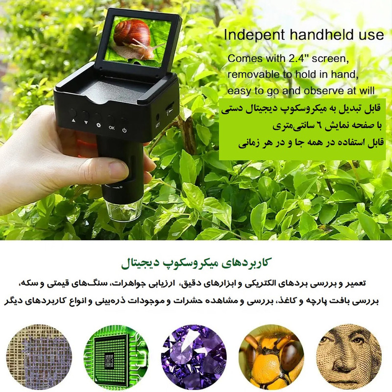 در میکروسکوپ و لوپ دیجیتال مدل 10-220X، تصویر از انعکاس نور از روی نمونه تشکیل میشود، بنابراین نیاز به آمادهسازی قبلی ندارید و میتوانید از مدار الکتریکی گرفته تا گیاه و حشره، یا هر چیزی را زیر لنز آن قرار داده و آنرا بررسی نمایید.