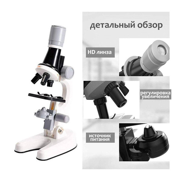 اسباب بازی میکروسکوپ برای افزایش مهارت های تجربی و آزمایشگاهی بسیار موثر می باشد که برای گروه سنی بالای 8 سال بسیار مناسب است. این محصول با دارا بودن اهرم بالا بر لنز و همچنین اهرم لیزر به شما توانایی وضوح بیشتر در نگاه کردن به اجسام را می دهد.قسمت چشمی این محصول قابلیت چرخش دارد. این محصول دارای سه بزرگنمایی 100X ، 400X و 1200X می باشد. این بخش از میکروسکوپ نیز قابل چرخش است که کودکان براحتی می توانند از هر سه لنز استفاده کنند. در کنار میکروسکوپ تعدادی انبر و ابزار آزمایشگاهی نیز موجود است که به اشتیاق و انگیزه کودک را به بازی افزایش می دهد. این مدل از میکروسکوپ دارای وسایل آزمایشگاهی و نمونه برداری مانند پنس ، لوله آزمایشگاهی ، قوطی و لام و ... لازم برای کودکان است و توسط دو عدد باتری قلمی تغذیه می شود.