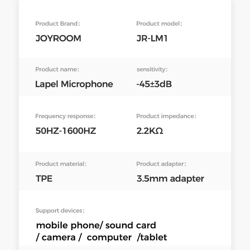 میکروفون سیم دار جویروم JR-LM1 با اکثر گوشی‌های موبایل، تبلت‌ها، کامپیوترها، کارت های صدا و دوربین ها سازگاری دارد و از قابلیت Multi Device نیز پشتیبانی می‌کند.