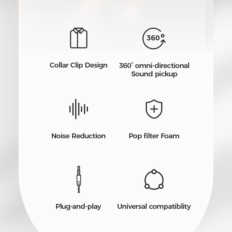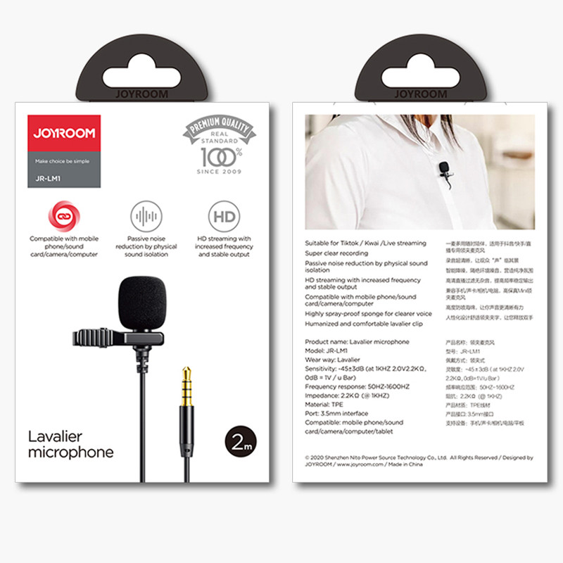 میکروفون یقه ای جویروم Joyroom JR-LM1 کابلی با 2 متر طول دارد و محدودیت جا به جایی برای شما ایجاد نمی‌کند. به علاوه برای اینکه جلوی دست و پا را نگیرد یک گیره یقه به آن متصل است که می‌توانید با گیر دادن آن به یقه لباس به سادگی صحبت کنید و نگران افتادن میکروفون نباشید.