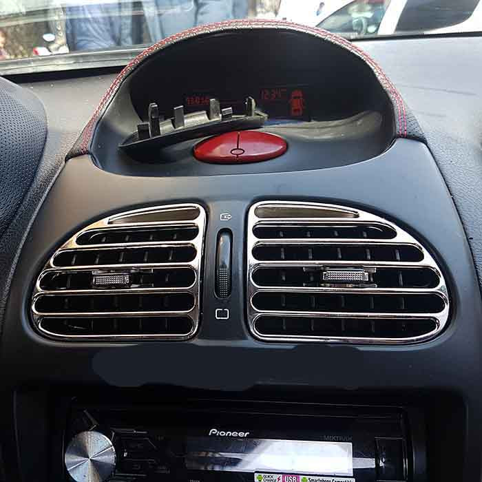 دکمه آبکاری کروم براق دریچه کولر پژو 206 به صورت دو تکه ساخته شده است که قسمت رویی به صورتی ویژه و سرتاسری همچون نوع اصلی پوشش کروم دارد. رنگ آبکاری کروم این محصول مقاوم و در برابر تابش مستقیم نور خورشید است. جنس دکمه ها از ABS ساخته شده که مقاومت بالایی در تغییر دما بهمراه می‌آورد. پک این محصول شامل چهار عدد دکمه برای تعویض تمامی دکمه های دریچه هوای خودرو پژو 206 می‌باشد. نصب دکمه ها بسیار آسان است. برای خارج کردن دریچه ها می‌توان با استفاده از یک اهرم در زیر دریچه ها آنها را درآورد و تعویض نمود. این محصول وارداتی می باشد