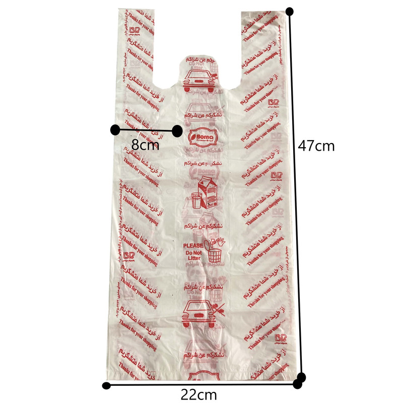 سایر توضیحات ابعاد درحالت بسته با احتساب دسته نایلون 47×21 سانتی متر این نایلون دسته دار تهیه شده از مواددرجه یک و اعلا بدون بو با چاپ میباشد مناسب جهت مصارف رستوران ها،خشکبار فروشی ها، لوکس فروشی هاو... سایز باز شده این پلاستیک37×47 سانتی متر میباشد این نایلون اصطلاحا به نایلون 3 کیلویی معروف است یعنی گنجایش 3 کیلوگرم کالارا دارد بسته 100 عددی