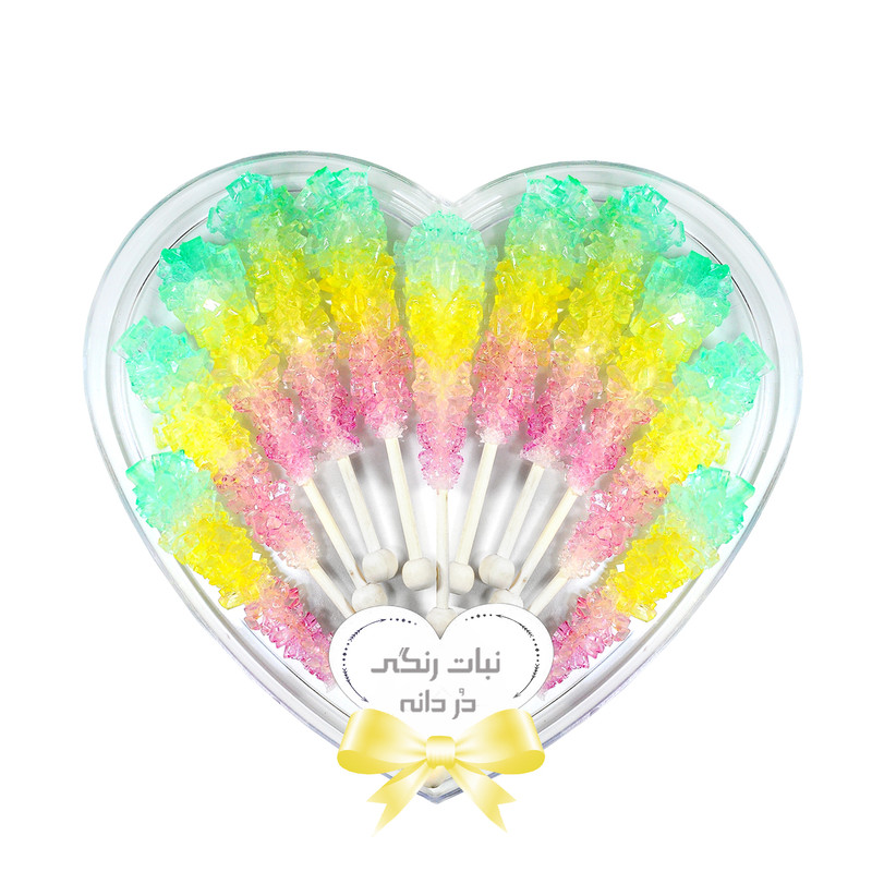 نباتهای رنگی در دانه با رنگهای قنادی خوراکی اینقدر زیبا رنگ آمیزی شده اند در ضمن طعم این نباتها همانند نباتهای معمولی هستند.این بسته شامل 11 عدد نبات چوبی با مهره است که دقیقا همانند عکس آماده و ارسال میشود.