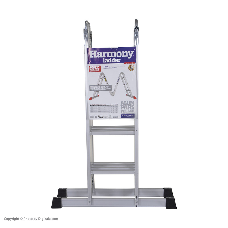نردبان 16 پله آلوم پارس پله مدل هارمونی امکان استفاده به صورت هشتی دو طرفه، خرپا، تمام باز دیواری و البته امکان تاشدن را دارد و بسیار کم‌جاست. این نردبان پایه‌ تعادل و قفل دارد که برای استفاده کار کاربر خود را راحت خواهد کرد.این نردبان دارای گواهینامه استاندارد ایران بوده که کیفیت خوب آن را تضمین خواهد کرد.485 سانتی‌متر ارتفاع این نردبان در حالت باز شده و نردبان از جنس آلومینیوم ساخته شده است. وز...