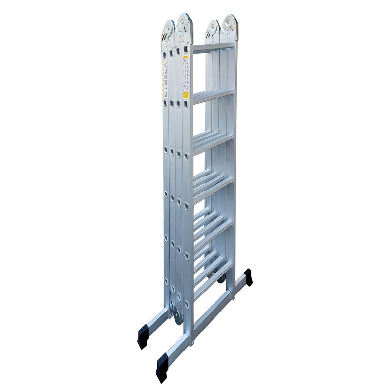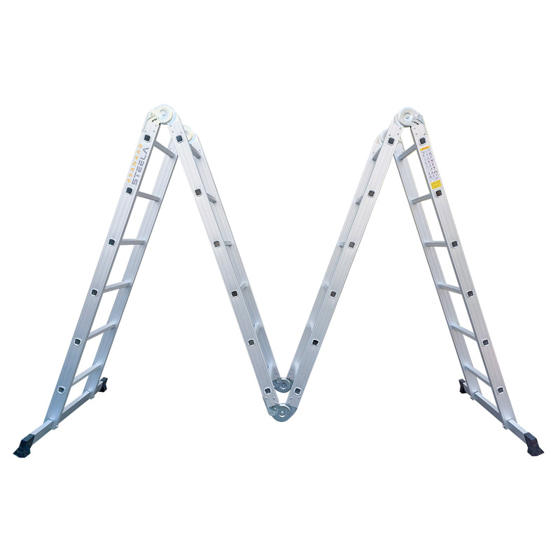 نردبان يكي از ملزومات اساسي در انجام امور و كارهاي فني بوده كه از قديم با تنوع خيلي كم به صورت چوبي و آهني كه بسيار جاگير، غير ايمن و سنگين مورد استفاده قرار ميگرفت.هم اكنون نردبان 24 پله چهار تكه مدل استیلا Es4p24 با شش مفصل فولادي بزرگتر، با عریض شدن پروفیلها (8 سانتیمتر) از نردبانهای دیگر قابليت استفاده در چند حالت مختلف با تحمل وزن به مراتب بیشتر را به ما ميدهد.تفاوت این نردبان با سایر نردبانهای مشابه پهنای بیشتر پروفیل (بیشتر از 8 سانتیمتر) و قوی تر بودن مفاصل میباشد که تحمل وزن نردبان را بیشتر کرده است. این نردبان از چهار تکه 175 متری تشکیل شده که پس از باز شدن ارتفاعی برابر با 7 متر به صورت یک طرفه و 3/5 به صورت دو طرفه را به ما میدهد. جنس اين نردبان كاملا از آلومينيوم فابريك بوده. همراه اين نردبان ركاب به صورت اشانتيون توسط شركت ارائه شده كه در نردبان هاي مشابه به هيچ عنوان يافت نميشود. اين ركاب به صورتي طراحي شده كه قابليت جا به جايي در هر پله را دارد و به ما امكان استفاده طولاني مدت با تحمل وزن بسيار بالا و بدون خستگي را ميدهد. اين نردبان داراي دو پايه T شكل است که قابلیت نصب در هر دو طرف را داراست كه به دليل برخوردار بودن از پايه های لاستيكي مانع از سر خوردن و باعث ايجاد تعادل صد در صد ميشود. اين محصول به صورت هشتي شكل به ارتفاع 3.5 متر ميرسد كه اين ارتفاع براي استفاده در کارگاهها، انبارها، کارخانهها، باشگاهها، سالنها، تالارها، مساجد، بيرون منزل، داخل حياط، سالن، فروشگاهها، ادارهجات و... مناسب است. مفصلها ي فولادی اين نردبان با پرچ فولادی به بدنه متصل شده و اين امر باعث استحکام بیشتر ميشود. در عكس آخر آلبوم، اشاره اي به نحوهي استفاده از ركاب شده است. نردبان آسانکار از استقامت و کیفیت بالایی برخوردار است و تحمل وزنی برابر با حدود 180 کیلوگرم را در قله نردبان دارا ست.