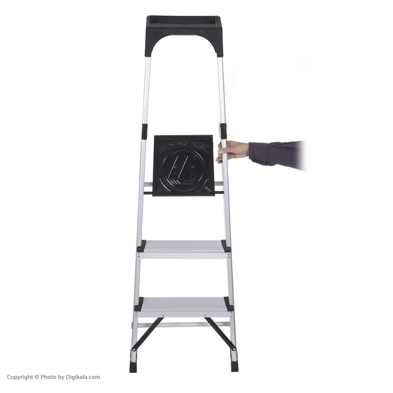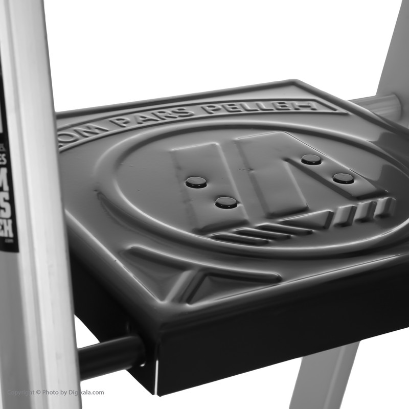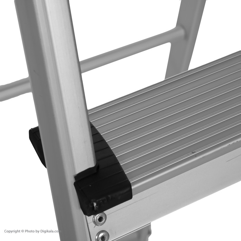 اقلام همراه | - دارای سینی پلاستیکی برای قرارگیری جعبه ابزار - دارای گواهینامه استاندارد ایران - ارتفاع دسترسی در آخرین پله با قد متوسط: 245 سانتیمتر - عرض پله: 8 سانتیمتر - دارای سیم فولادی مهار شده جهت استحکام بیشتر |