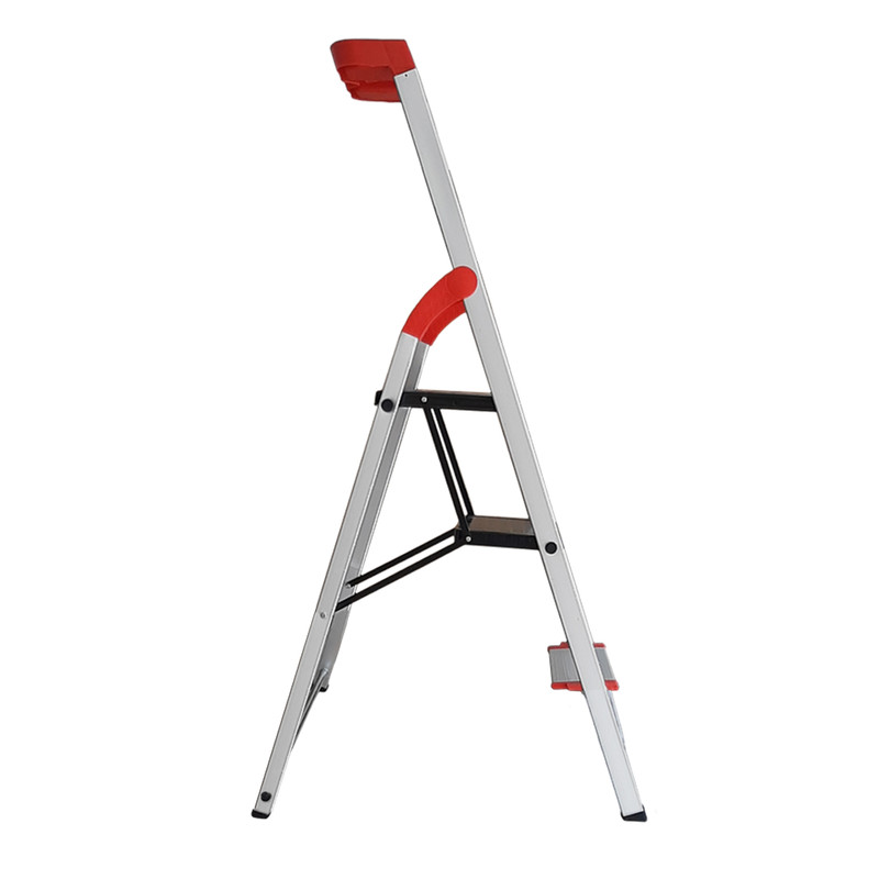 نردبان سه پله یوکسل +2 از جنس آلومینیوم فابریک و نمونه دیزاین آلمانی است. به نسبت نردبان های قدیمی یوکسل، مدل جدید +2 دارای 2 پله ی پهن در بالای نردبان می باشد و نیز ارتفاع آن 25 سانتی متر بیشتر از مدل های قبلی است که این وجه تمایز دسترسی به ارتفاع بالاتر با همان تعداد پله را میسر می سازد. همچنین طراحی 2 پله ی پهن در بالای این نردبان، ایستادن طولانی مدت در پله ی پایینی را هم برای فرد فراهم ساخته است. این نردبان علاوه بر وزن بسیار کم از استحکام بسیار بالایی نسبت به مدل های قبلی برخوردار است و همین قابلیت این محصول را از سایر محصولات مشابه متمایز کرده است. دیگر ویژگی برجسته ی این نردبان برخورداری از پله های پهن طول 12 سانتیمتری در پایین است که نه تنها به تعادل و امنیت هرچه بیشتر شما کمک می کند، بلکه به زیبایی آن نیز می افزاید و شباهت آن را به نمونههای آلمانی بیشتر میکند. وزن این محصول حدود 6 کیلوگرم با تحمل وزن 130 کیلوگرم است به طوری که هر فردی، حال چه مسن و چه خرد سال به راحتی قادر به حمل آن خواهند بود . ارتفاع این نردبان برای خانههای آپارتمانی بسیار مناسب است و به شما این امکان را میدهد که به نحو احسنت به کابینتهای اشپزخانه و لوسترها دسترسی و تسلط داشته باشید. پایههای این محصول از جنس پلاستیک است و احتمال سر خوردن را به حداقل میرساند و داشتن ابعاد بزرگتر در دو طبقه فوقانی به شما تعادل و راحتی بالایی میبخشد و دچار لرزش نخواهد شد. این نردبان دارای جایگاه ابزار در بخش بالای دسته است و باعث سهولت در انجام کارهایی نظیر دریل کاری، چوب پرده زدن وکارهای فنی است. قسمت بالای نردبان دارای جایگاه تکیه گاه است و به فرد امنیت و تعادل بالایی برای ایستادن در پله ی آخر را می دهد.