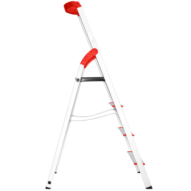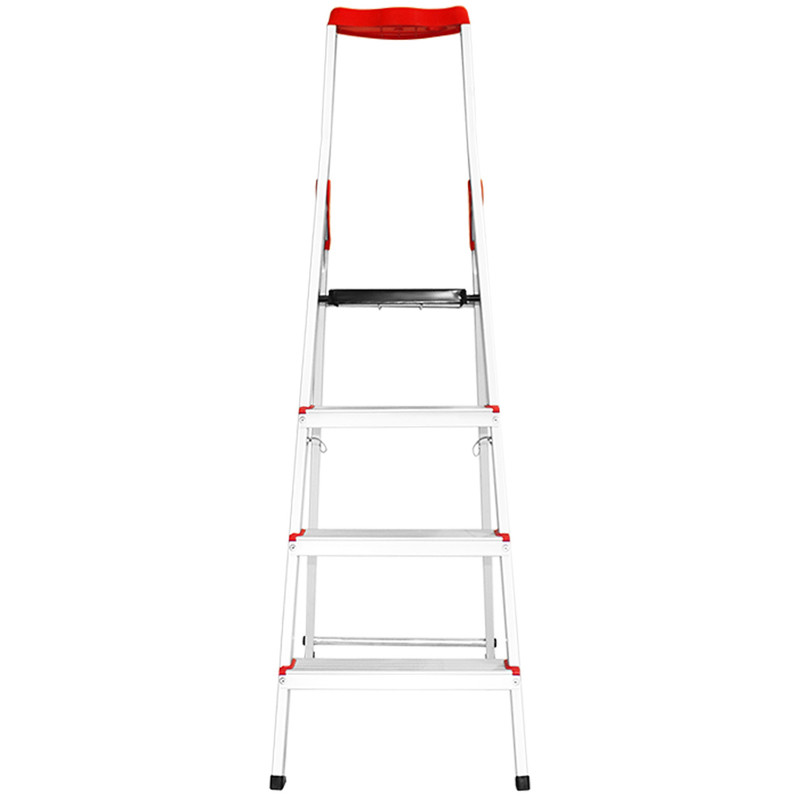نردبان چهار پله بهمن از جنس آلومینیوم فابریک و نمونه دیزاین آلمانی است. این نردبان علاوه بر وزن بسیار کم از استحکام بسیار بالایی برخوردار است و همین قابلیت این محصول را از سایر محصولات مشابه متمایز کرده است. وزن این محصول حدود 5 کیلوگرم با تحمل وزن 150 کیلوگرم است به طوری که یک فرد مسن و یا خرد سال به راحتی قادر به حمل آن است و همچنین ارتفاع آن برای خانه های آپارتمانی مناسب است. پایه های این محصول از جنس پلاستیک است و احتمال سر خوردن را به حداقل می رساند و طبقه فوقانی آن با ابعاد بزرگ تر از سایر پله ها به فرد تعادل و راحتی بالایی می بخشد و دچار لرزش نخواهد شد. این نردبان دارای جایگاه ابزار در بخش بالای دسته است و باعث سهولت در انجام کارهایی نظیر دریل کاری چوب پرده زدن وکارهای فنی است. قسمت بالای نردبان دارای جایگاه تکیهگاه است و به فرد امنیت و تعادل بالایی برای ایستادن در پله ی آخر را میدهد.