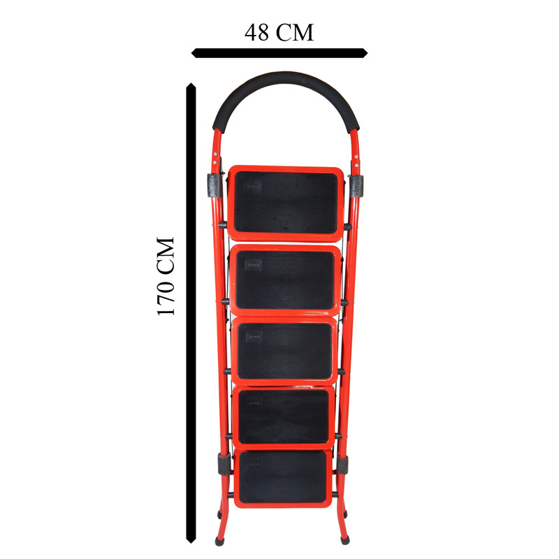 نردبان پنج پله مدل بلندا، یک محصول مقاوم، سبک و با دوام است که برای انجام کارهای عمومی در منازل و کارگاهها بسیار مناسب است. دقت ساخت و نوع طراحی این محصول به گونه ای است که بدون لرزش بوده و حداکثر ایمنی را برای کاربر فراهم می کند. وزن بسیار کم این نردبان موجب شده که جابجایی و حمل و نقل آن بسیار آسان باشد. کفپوش عایق و عاج دار روی پلهها از سر خوردن کاربر جلوگیری می کند. همچنین پهن تر بودن سطح پلههای این نردبان با ابعاد 24x37 آن را از سایر نردبان های مشابه متمایز ساخته و باعث می شود هنگام استفاده احساس خستگی نکنید. همچنین وجود کفپوش لاستیکی برای پایههای نردبان باعث حفاظت از سطح زیرین مثل فرش، موکت و پارکت میشود.