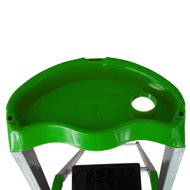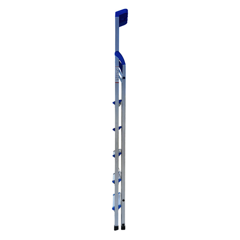 نردبان 6 پله مدل کیهان با استفاده از پروفیل مقاوم تحمل وزنی بیش از 150 کیلو را برای فرد میسر ساخته است. این نردبان نسبت به نردبان های هم رده ی خود با همین تعداد پله از بیشترین ارتفاع در پله آخر برخوردار است که ارتفاع آن در حالت باز شده از زمین تا آخرین پله معادل 160 سانتی متر می باشد. رنگ این نردبان الکترواستاتیک است و از جوش CO و از سیم فولادی در کناره های بدنه، برای استحکام بیشتر نردبان استفاده شده است. پله ی بالایی این نردبان پهن تر از سایر پله ها بوده که استفاده ی طولانی مدت را برای فرد راحت تر می سازد. بیشتر ما زمانی که از نردبان استفاده میکنیم، در صورت نیاز داشتن به ابزار مختلف یا از فردی دیگر درخواست کمک میکنیم و یا خود مجبور به پایین رفتن از نردبان میشویم. اما نردبان پنج پله کیهان با داشتن یک سینی پلاستیکی مخصوص ابزار در قسمت بالای خود، این مشکل را رفع کرده و زمان انجام کار را کاهش می دهد.