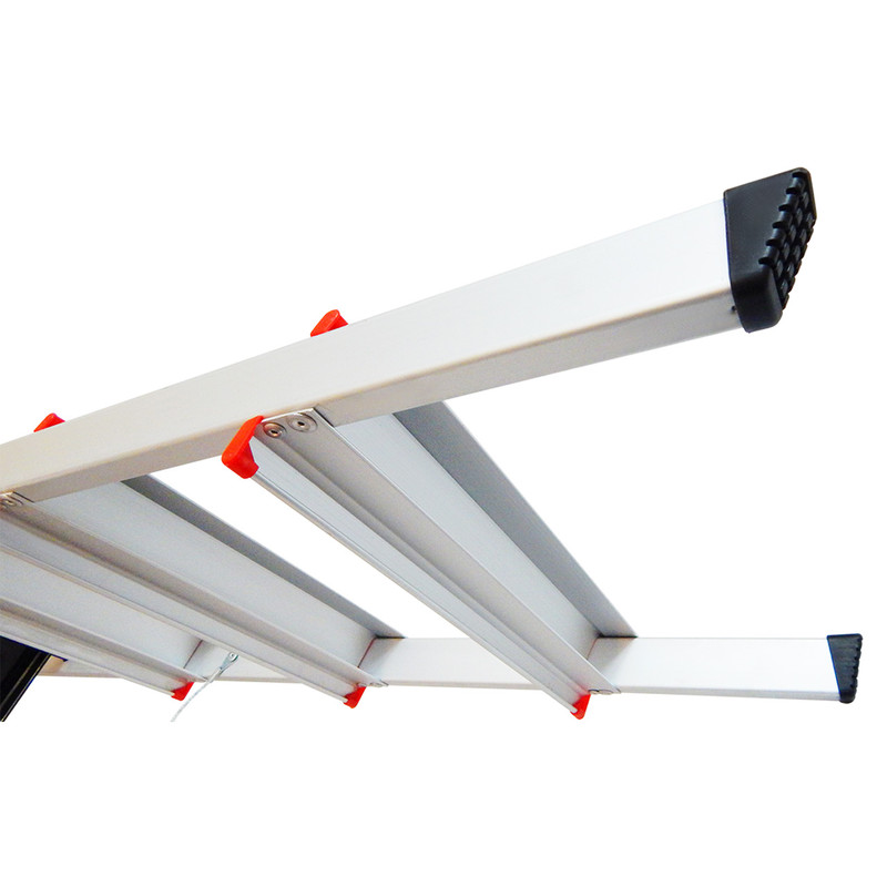 نردبان هفت پله بهمن از جنس آلومینیوم فابریک و نمونه دیزاین آلمانی است. این نردبان علاوه بر وزن بسیار کم از استحکام بسیار بالایی برخوردار است و همین قابلیت این محصول را از سایر محصولات مشابه متمایز کرده است. وزن این محصول حدود 7.5 کیلوگرم با تحمل وزن 120 کیلوگرم است به طوری که همه افراد نظیر افراد مسن و حتی بانوان به راحتی قادر به حمل آن هستند و همچنین ارتفاع آن برای خانههای آپارتمانی، فروشگاهها، ادارات، کارگاهها و مغازهها مناسب است. پایههای این محصول از جنس پلاستیک است و احتمال سر خوردن را به حداقل می رساند و طبقه فوقانی آن با ابعاد بزرگ تر از سایر پلهها به فرد تعادل و راحتی بالایی میبخشد و دچار لرزش نخواهد شد. این نردبان دارای جایگاه ابزار در بخش بالای دسته است و باعث سهولت در انجام کارهایی نظیر دریل کاری چوب پرده زدن وکارهای فنی است. قسمت بالای نردبان دارای جایگاه تکیه گاه است و به فرد امنیت و تعادل بالایی را برای ایستادن در پله ی آخر میبخشد.