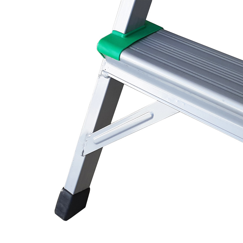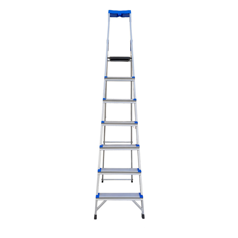 نردبان 7 پله مدل کیهان با استفاده از پروفیل مقاوم تحمل وزنی بیش از 150 کیلو را برای فرد میسر ساخته است. این نردبان نسبت به نردبان های هم رده ی خود با همین تعداد پله از بیشترین ارتفاع در پله آخر برخوردار است که ارتفاع آن در حالت باز شده از زمین تا آخرین پله معادل 185 سانتی متر می باشد. رنگ این نردبان الکترواستاتیک است و از جوش CO و از سیم فولادی در کناره های بدنه، برای استحکام بیشتر نردبان استفاده شده است. پله ی بالایی این نردبان پهن تر از سایر پله ها بوده که استفاده ی طولانی مدت را برای فرد راحت تر می سازد. بیشتر ما زمانی که از نردبان استفاده میکنیم، در صورت نیاز داشتن به ابزار مختلف یا از فردی دیگر درخواست کمک میکنیم و یا خود مجبور به پایین رفتن از نردبان میشویم. اما نردبان 4 پله کیهان با داشتن یک سینی پلاستیکی مخصوص ابزار در قسمت بالای خود، این مشکل را رفع کرده و زمان انجام کار را کاهش می دهد.