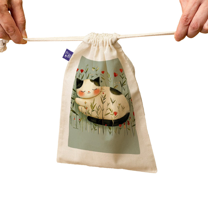"کیسه پارچه ای بند دار برای تقسیم بندی لوازم و نگهداری آن ها در کیف، یخچال و... بهترین گزینه شما خواهد بود. اگر به دسته بندی لوازم به سبک و سلیقه خودتان علاقمندید کیسه پارچه ای بند دار مناسب شماست. شما می توانید در این کیسه های بنددار لوازم مختلفی از جمله لوازم التحریر، لوازم خیاطی و حتی خوراکی را نگهداری کنید، توی یخچال یا کیف و یا کشوی کمد بگذارید و از گم شدن و یا خراب شدن آن ها جلوگیری کنید. جنس این کیسه پارچه ای بند دار از جنس پارچه نرم و لطیف بوده و به سادگی خراب نخواهد شد. علاوه بر این چاپ طرح های اختصاصی روی کیسه بند دار به یک کیسه شخصی برای شما تبدیل می کند و شما تنها با کشیدن بند و بستن مهره چوبی می توانید این کیسه را باز و بسته کنید و از شر گره های کور کیسه های پلاستیکی خلاص شوید.