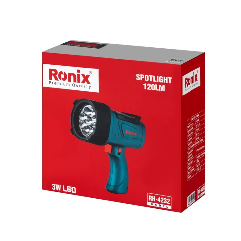 در فضاهای تاریک، مثل طبیعت و کوه یا برای انجام کارهای تعمیراتی، میتوانید روی نورافکن تفنگی 80 لومن رونیکس مدل RH-4232 حساب کنید. این ابزار روشنایی با استفاده از باتریهای قلمی میتواند تا فاصلۀ 200 متری را روشن کند.