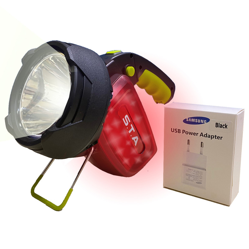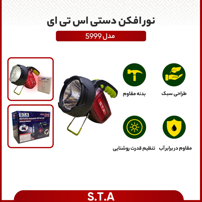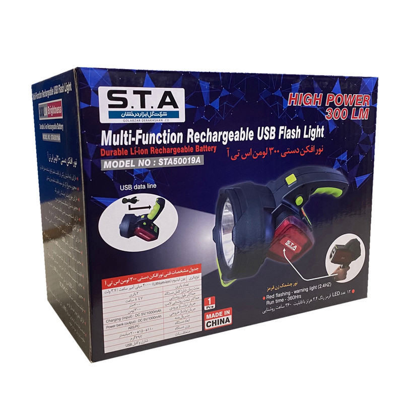 سایر توضیحات-مجهز به چـــــراغ کار با نور سفید با قابلیت تنظیم میزان روشنـــــایی -قابلیت استفاده به عنوان پــــــــــاور بانک جهت شـــــــــارژ موبایل -دارای پایه استیل روکش دار با قابلیت تنظیم ارتفاع و استفاده به عنوان قلاب آویز -دارای چراغ هشدار چشمک زن قرمز رنگ -نورافکن 300 لومن با قابلیت تنظیم روشنایی 100% و 50% -دارای 2 عدد باتری لیتیومی 3.7 ولت با ظرفیت 4000 میلی آمپــــر ساعت -مجهز به سیستم محافظ مدار که از شارژ بیش از حد باتــری جلوگیری می کند -مجهز به نمایشگر LED میزان شارژر دستگاه و درگاه USB روکش دار -مجهز به لامپ LED با تکنولوژی پیشرفته SMD با بالاترین میزان روشنایی و طول عمر بیشتر -بدنه ساخته شده از بهترین متریال ABS و روکش لاستیکی محافظ با بالاترین میزان مقاومت در برابر ضربه و رطوبت -به همراه یک عدد شارژر -ساخت کشور چین