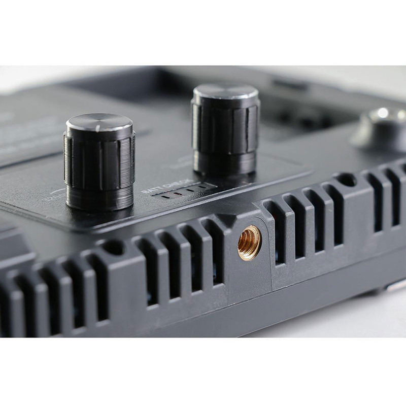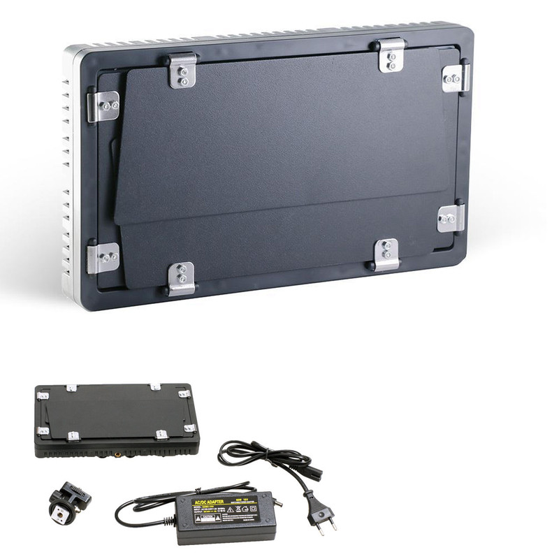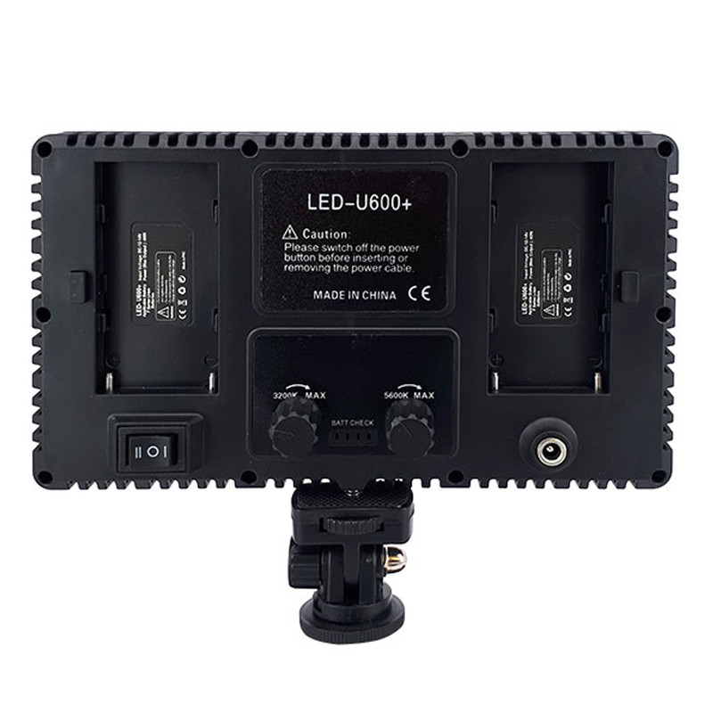 ویژگی ها----بدون باتری ----برق مستقیم دارای اداپتور ----قابلیت استفاده از باتری (باتری جداگانه باید تهیه شود) ----نور مناسب استفاده بر روی انواع دوربین های DSLR برای عکاسی خبری،نورپردازی در شب و عکاسی از محصولات کوچک ----دارای 600 قطعه لامپ SMD با قدرت 50 وات ---- دارای شیدر جهت کنترل نور ----دارای پایه کفشک دار جهت نصب روی هات شو دوربین ----قابل استفاده با 2 عدد باتری سری NP-F و یا از طریق آداپتور و برق شهری (این پنل دارای یک کلید دو طرفه است که می توانید انتخاب کنید از طریق باتری روشن روشن گردد و یا از طریق برق شهری)