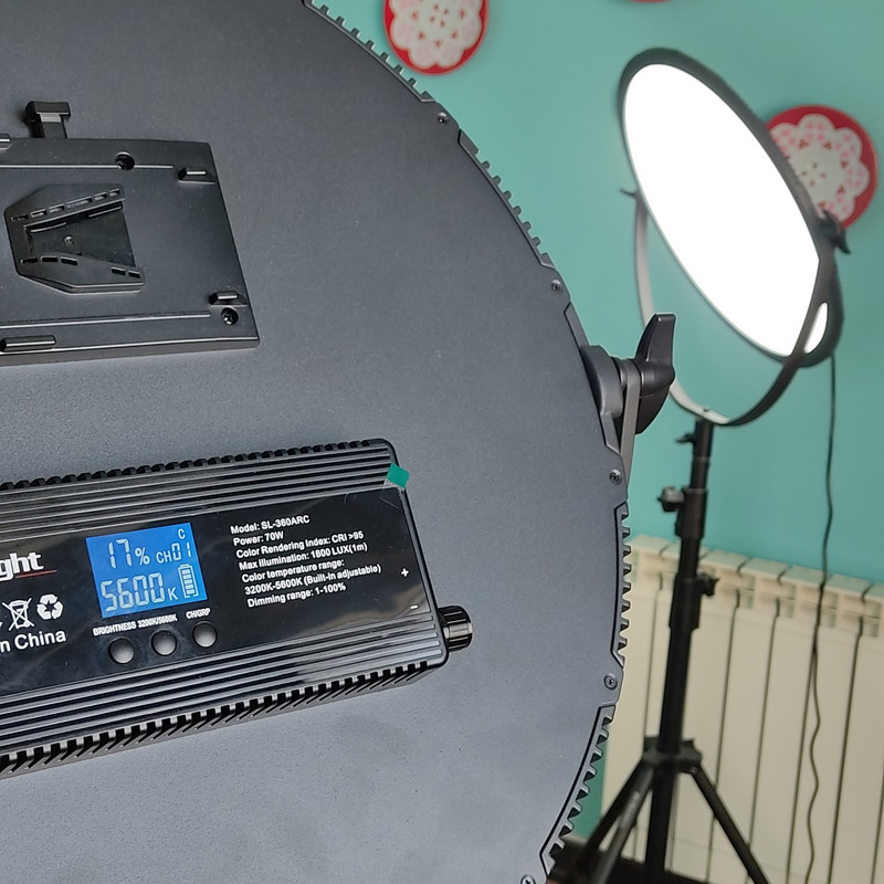 ویژگی هادارای CRI>95 با قدرت خروجی 70 وات دارای صفحه نمایش LCD قابل استفاده از طریق آداپتور برق مستقیم باتری و خشاب باطری V-mount جداگانه باید تهیه شود کنترل از راه دور با برد 50 متر ابعاد : 53.9X3.8X54.8 سانتی متر 1800 لوکس در فاصله یک متری 3200 تا 5600 کلوین تنظیم روشنایی از 1 تا 100 درصد