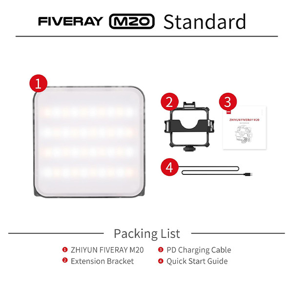 در دنیای تولید محتوا، نورپردازی نقش تعیینکنندهای در کیفیت خروجی نهایی دارد. چه در حال ضبط یک ولاگ شخصی باشید، چه در حال فیلمبرداری یک پروژه تبلیغاتی، یا حتی در حال ثبت یک پرتره ساده، نوری که در اختیار دارید میتواند مرز بین یک خروجی آماتور و یک تولید حرفهای را تعیین کند. در این میان، کمپانی Zhiyun که پیشتر با گیمبالها و تجهیزات تثبیتکنندهاش شناخته شده بود، با عرضهی سری FIVERAY پا به دنیای نورپردازی قابلحمل گذاشت. یکی از درخشانترین اعضای این خانواده، چراغ LED دو رنگ Zhiyun FIVERAY M20 است؛ نوری فشرده، سبک و چندمنظوره که قصد داریم در این متن، نگاهی بسیار مفصل و تحلیلی به آن داشته باشیم.Zhiyun FIVERAY M20 به گونهای طراحی شده که بیشترین قابلیت حمل را با خود به همراه داشته باشد. این چراغ تنها ۷۶ میلیمتر طول، ۷۶ میلیمتر عرض و ۳۶ میلیمتر ضخامت دارد و وزن آن تنها ۲۰۰ گرم است. این ابعاد فشرده باعث شده که بتوان آن را بهراحتی در جیب یا کیف کوچک قرار داد، بدون آنکه مزاحمتی ایجاد کند یا وزن تجهیزات شما را بهطور محسوس افزایش دهد.در عین حال، بدنه از پلاستیک مستحکم و مقاوم در برابر حرارت ساخته شده که ضمن حفظ وزن پایین، مقاومت مناسبی در شرایط محیطی مختلف دارد. رنگ بدنه مات و ضداثر انگشت طراحی شده که از لحاظ زیباییشناسی نیز رضایتبخش است.Zhiyun M20 یک چراغ Bi-Color است؛ به این معنا که کاربر میتواند دمای رنگ نور خروجی را بین ۲۷۰۰ تا ۶۵۰۰ کلوین تنظیم کند. این بازه وسیع دمایی امکان ایجاد نور گرم (زرد) تا نور سرد (آبی) را فراهم میسازد. چنین انعطافی در تنظیم رنگ باعث میشود که M20 هم برای استفاده در محیطهای داخلی با نورهای گرم و هم برای فضاهای باز یا استودیوهای حرفهای با نور سرد مناسب باشد.یکی از ویژگیهای منحصربهفرد FIVERAY M20 وجود ۱۰ جلوه نوری از پیش تعریفشده است. این افکتها شامل شمع، تلویزیون، رعد و برق، فلاش دوربین، چراغ خطر، SOS، و حتی حالتی هماهنگ با موسیقی میشود. حالت Music Mode در این چراغ بسیار جالب توجه است؛ چرا که نور به ریتم صدای محیط واکنش نشان میدهد و نوعی نورپردازی زنده و پویا خلق میشود. این ویژگی برای فیلمبرداری از اجراهای موسیقی، ضبط ویدیوهای خلاقانه و تولید محتوای شبکههای اجتماعی بسیار کاربردی است.