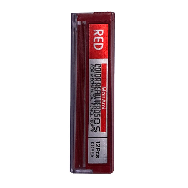 نوک اتود Mon Ami قرمز بسیار با کیفیت و محصول کشور کره میباشد.قطر نوشتاری این محصول 0.5 دهم میلیمتر و بسیار و نرم و روان است. در هر بسته آن 12 عدد نوک رنگی قرار دارد.رنک این محصول مانند مداد های قرمز بسیار پر رنگ است
