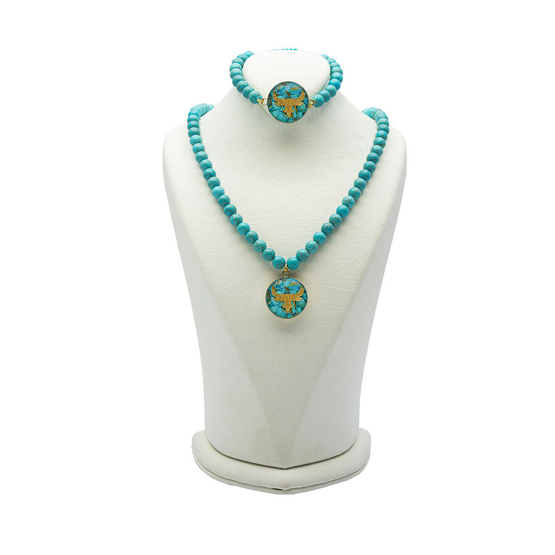 این نیمست نفیس، هدیهای بینظیر برای متولدین اردیبهشت، ماه تجدید حیات و زیبایی است. سنگ فیروزهی بهکاررفته در این نیمست، با رنگ آسمانی و آرامشبخش خود، نمادی از سلامتی، شادابی است. روکش طلای آن، درخشش و جلوهای لوکس به این جواهرات میبخشد.