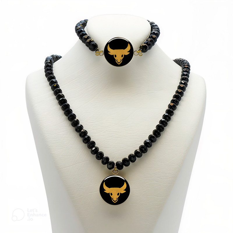 این نیمست نفیس شامل گردنبند و دستبند، با ظاهری خیرهکننده و طراحی مدرن، به شما اصالتی بینظیر میبخشد. روکش طلای 5 میکرونی با لایه محافظ رزین، نه تنها درخششی چشمگیر به آن بخشیده، بلکه ماندگاری و دوام بینظیری را تضمین میکند. مهرههای مشکی ظریف، در کنار نماد برج ثور (گاو نر) با روکش طلا، تضادی زیبا و قدرتمند ایجاد کردهاند که هر نگاهی را به خود مجذوب میکند.