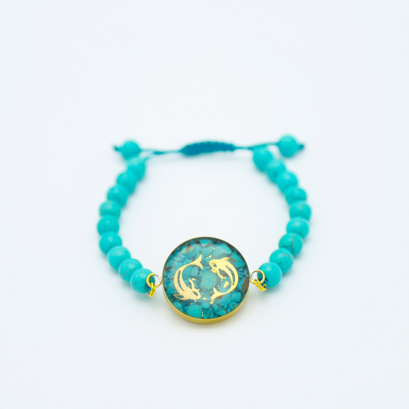 محصولات دستساز آلتین هنر، حس و انرژی بی نظیر هنر ایرانی را در نیم ست فیروزه ماه اسفند خلاصه کرده است. درخشش ورق طلای طرح ماهی در وسط گردنبند و دستبند سنگ خوش رنگ فیروزه، همیشه مثل مشعل آتش در حال شعلهور شدن است.