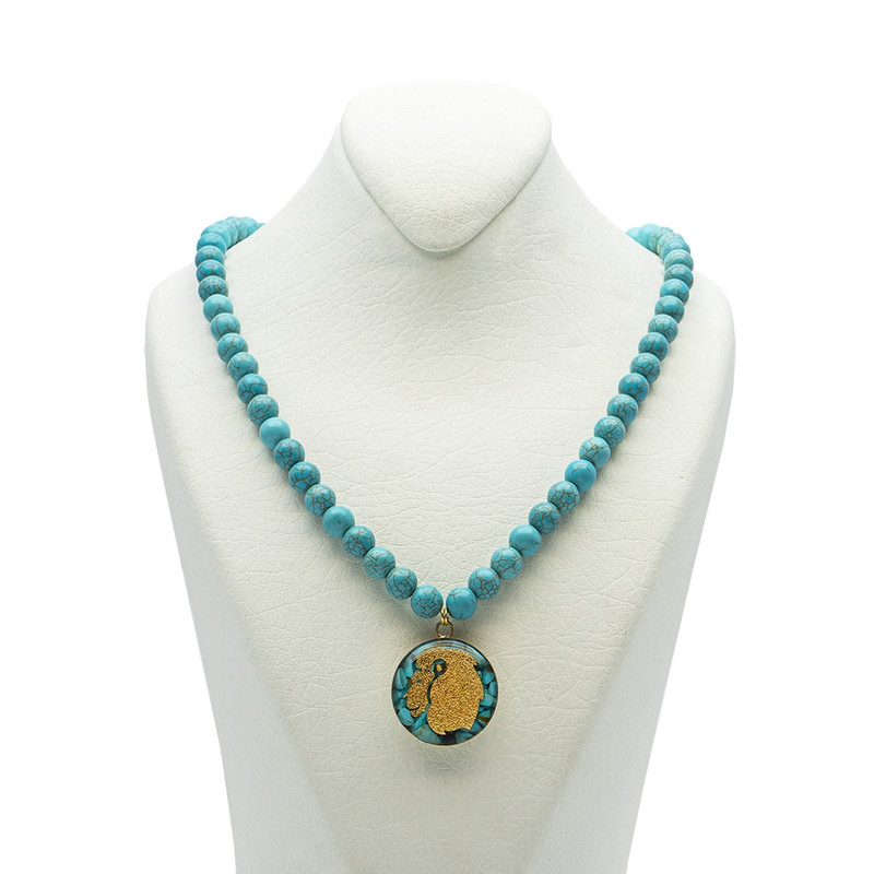سمبل ماه مرداد شیر است. محصولات دستساز آلتین هنر، حس و انرژی بی نظیر هنر ایرانی را در نیم ست فیروزه ماه مرداد خلاصه کرده است. درخشش ورق طلای طرح شیر در وسط گردنبند و دستبند سنگ خوش رنگ فیروزه، همیشه مثل مشعل آتش در حال شعلهور شدن است.