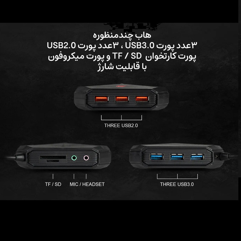 هاب چند منظوره 3 عدد پورت 3usb2.0 عدد پورت usb3.0 پورت میکروفن با قابلیت شارژ پورت کارتخوان FT/SD