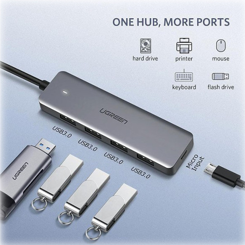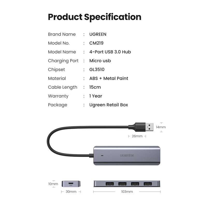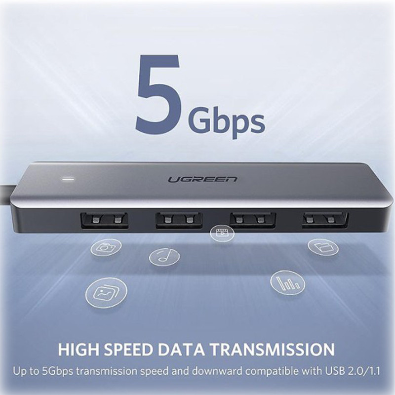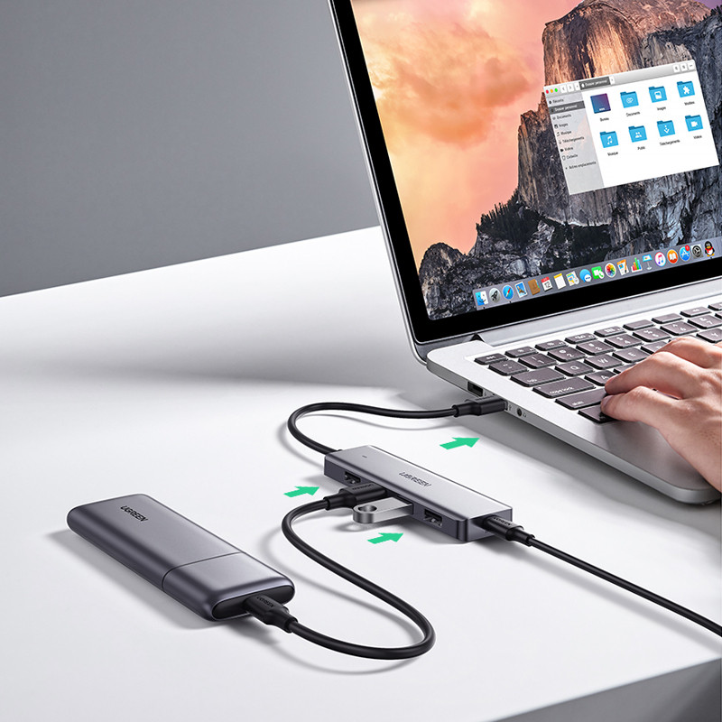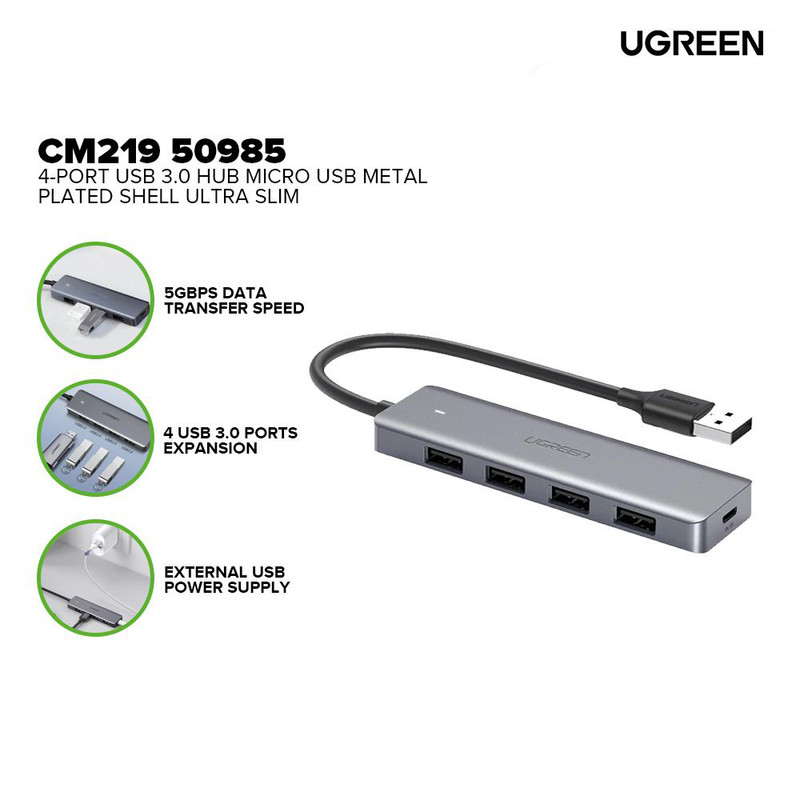 هاب CM219-50985 یوگرین دارای 4 پورت USB 3.0 میباشد که قابلیت انتقال اطلاعات با سرعت 5Gbps را دارد. این هاب قابلیت پشتیبانی از هارد اکسترنال با حافظه 10 ترابایت را دارد. این ها جهت انتقال دیتا طراحی شده است و برای شارژ کردن دستگاه شما توصیه نمیشود.