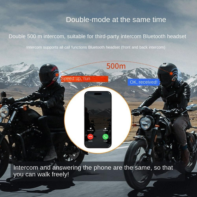 دو نفر در حال صحبت : ۲۰۰-۵۰۰ متر ارتباط داخلی، پشتیبانی از همه هدست‌های بلوتوثی ارتباط داخلی، قابلیت جفت شدن جهانی به دو سرنشین امکان صحبت با یکدیگر را می‌دهد. هدست بلوتوث به طور پایدار متصل شده و برای سفر در فضای باز مناسب است. پاسخگویی خودکار، عملکرد کاهش نویز DSP، تماس صوتی واضح. هدفون‌های ارتباط داخلی از ارتباط داخلی صندلی‌های جلو و عقب پشتیبانی می‌کنند.
