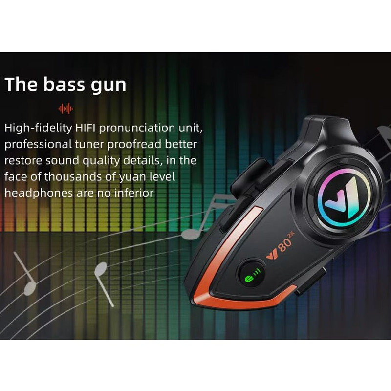 کیفیت صدای بالا، صدای بلند : واحد تلفظ HIFI با دقت بالا، تصحیح تیونر حرفه‌ای، جزئیات کیفیت صدا را بهتر بازیابی می‌کند. هدست بلوتوث کمکی موتورسیکلت از بلوتوث ۵.۰، موسیقی استریو و دستیار صوتی سیری پشتیبانی می‌کند. نویز پس‌زمینه را کاهش دهید و مطمئن شوید که هنگام رانندگی با سرعت بالا، صدای شما همچنان به وضوح شنیده می‌شود.