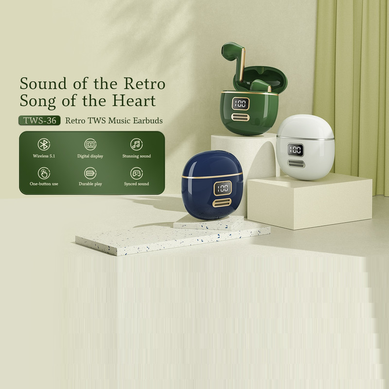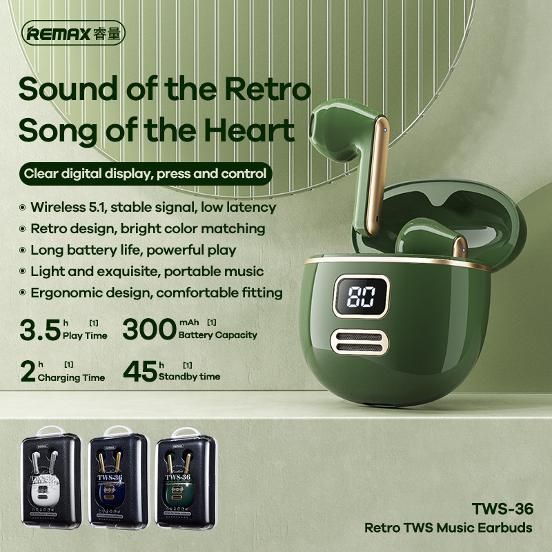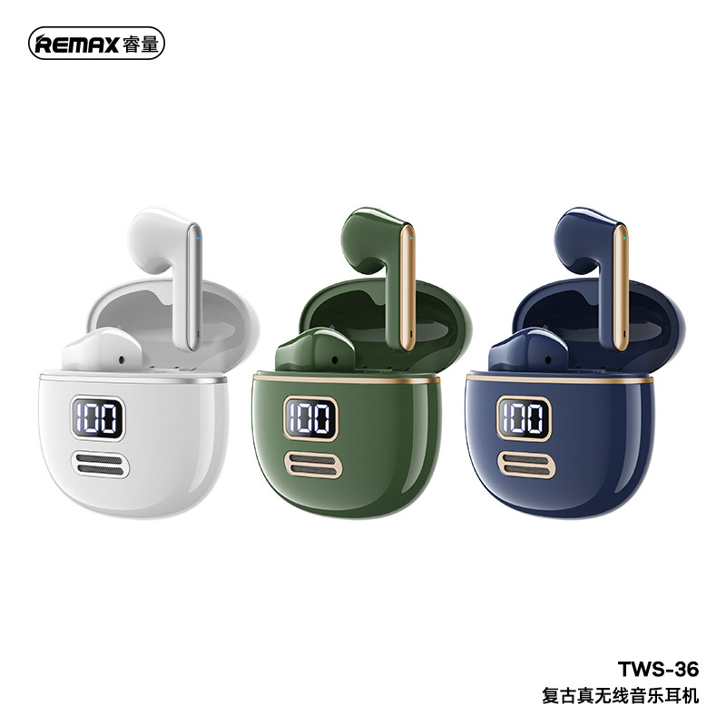 برند ریمکس از برند های معروف و پر آوازه در عرصه تولید انواع لوازم جانبی در جهان است.این کمپانی در تولیدات خود کیفیت و زیبایی را در اولویت قرار داده است و توانسته است طرفدارن بیشماری را در سراسر دنیا برای خود کسب کند.هدفون بلوتوثی ریمکس طرح کلاسیک مدل TWS-36 ،یکی دیگر ازجدیدترین و زیباترین ایرپادهای ساخته شده این شرکت بوده که در این مدل با استفاده از طراحی مدرن و تلفیق آن با طراحی گذشته مدلی کلاسیک و منحصر بفرد را برای مکالمه و پخش موزیک و دیگر کاربریها ارائه نموده است. در این مدل با استفاده از چیپست منحصر بفرد خود حداکثر شفافیت، کیفیت و عمق صدا با کیفیت HD را برای شما به اجرا می گذارد.طراحی آرگونومیک گوشی ها بنحوی است که براحتی در داخل گوش ها قرار می گیرد و فناوری TWS با آخرین ورژن بلوتوثی 5.1 نیز برای این هندزفری بی سیم درنظر گرفته شده است که بدون هیچگونه قطعی صدا امکان اتصال گوشی ها را به صورت جفتی و تکی به طور همزمان برای دستگاه های مختلف فراهم می کند که این قابلیت علاوه بر اشتراک گذاری آهنگ موردعلاقه با دیگر افراد، باعث نگهداری شارژ یک سری برای استفاده در مواقع اضطراری شده بدون اینکه نگرانی بابت اتمام انرژی باتری نیز وجود داشته باشد و با یکبار َشارژ آن نیز میتوان بیشتر از 3.5 ساعت بدون وقفه از آن برای پخش موزیک و یا مکالمه استفاده نمود.میزان شارژ در این مدل توسط یک صفحه نمایش ال ای دی بصورت درصد نمایش داده میشود.جهت آسودگی خیال شما از خرید این محصول میتوانید با بارکد خوان گوشی خود اوریجنال بودن آنرا از طریق وب سایت رسمی شرکت ریمکس اصالت سنجی نمایید.