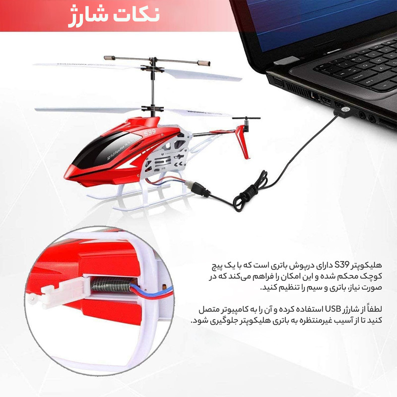 | سایر توضیحات | دارای تکنولوژی ژیرو که باعث میشود هلیکوپتر در پرواز پایدار تر بماند |