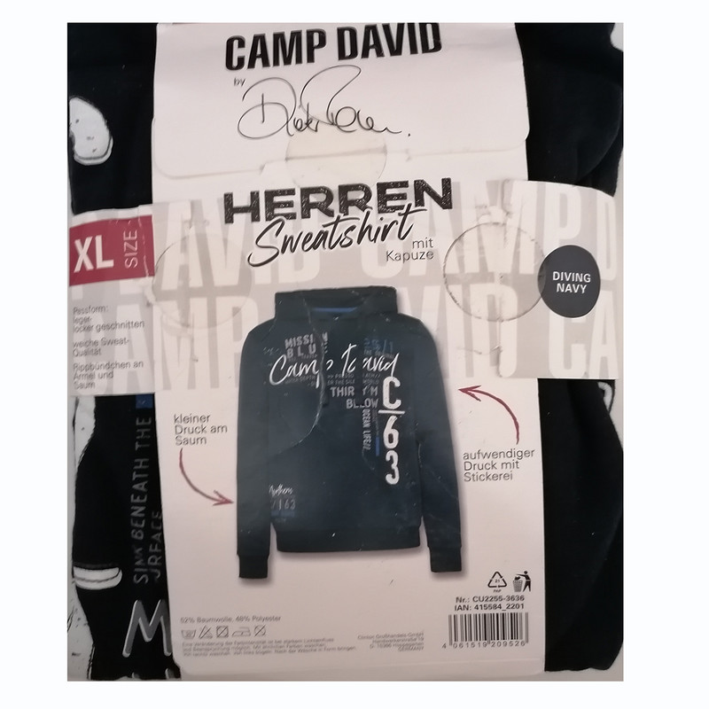 هودی کمپ دیوید کلاه دار بسیار نرم و لطیف آمیخته ای از 52 درصد نخ و پنبه و 48 درصد پلی استر می باشد و چون بر چسب کیفیت دارد هیچگونه حساسیتی ایجاد نمی کند. لازم به توضیح است این مدل از لباس کمپ دیوید قواره دار است و سایزبندی آن بر اساس سایزهای اروپایی یورو ( EUR ) می باشد و نوع استایل اصلی در عکس ها نشات دهنده جذب یا آزاد و یا بلند و کوتاه بودن لباس است . در کل سایز لباس های ایرانی نسبت به سایزهای آلمانی ( EUR ) در اکثر مواقع یکی نیست. به طور کلی برای انتخاب لباس آلمانی شما باید یک سایز از سایز لباس ایرانی خود را کم کنید به عنوان مثال اگر در سایز ایرانی XL می پوشید باید در سایز آلمانی L را انتخاب کنید حتما جدول تبدیل سایزهای ایرانی به آلمانی را در قسمت عکسها مطالعه بفرمایید...لطفا با رنگهای مشابه بشویید و از مواد شوینده رنگی استفاده کنید...